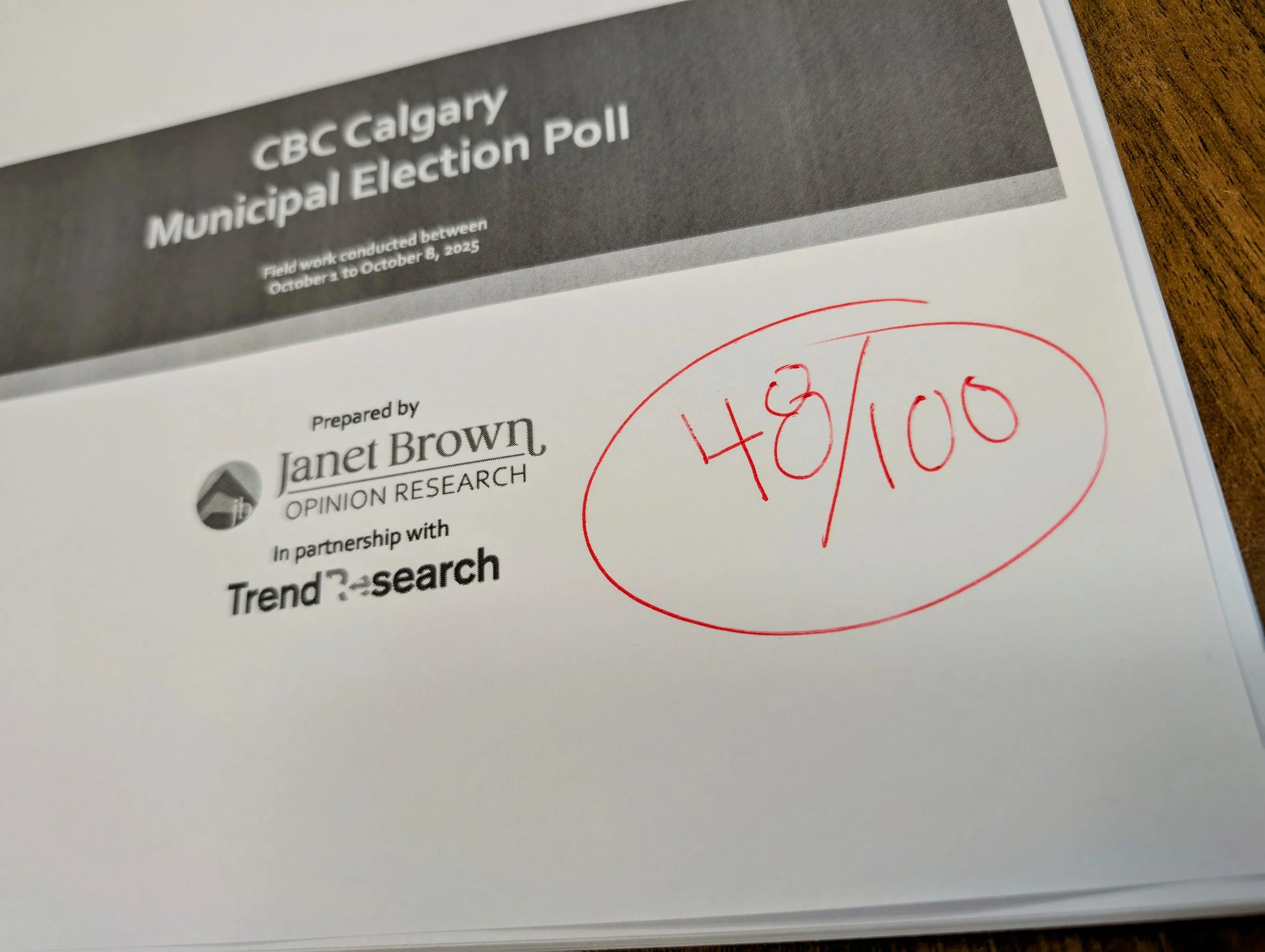 CBC Calgary Municipal Election Poll. Fielded Oct. 1–8, 2025, with 1,000 City of Calgary residents via Trend Research Online Panel, under the direction of Janet Brown Opinion Research. Quotas by age, gender and city quadrant; minimal weighting to Statistics Canada benchmarks. Non‑probability survey (no applicable margin of error). The report provides an illustrative ±3.1 points for a comparable probability sample.